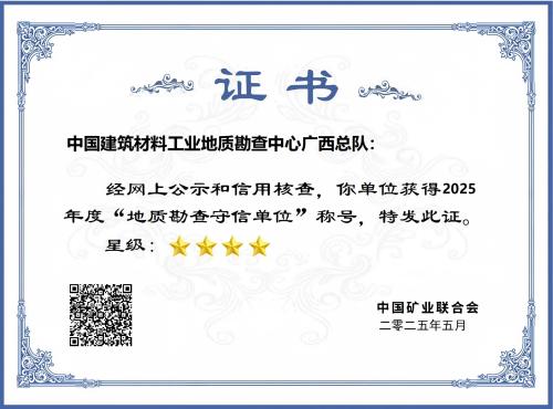 近日,廣西總隊(duì)?wèi){借在地質(zhì)勘查領(lǐng)域多年來的扎實(shí)積淀與誠(chéng)信履約的良好口碑,成功斬獲中國(guó)礦業(yè)聯(lián)合會(huì)授予的四星級(jí)“地質(zhì)勘查守信單位”稱號(hào)。據(jù)悉,該評(píng)級(jí)體系以五星級(jí)為最高標(biāo)準(zhǔn),目前全國(guó)范圍內(nèi)四星級(jí)已是行業(yè)內(nèi)的標(biāo)桿等級(jí),此次全國(guó)僅有111家單位獲此殊榮,廣西總隊(duì)?wèi){借突出表現(xiàn)躋身其中。