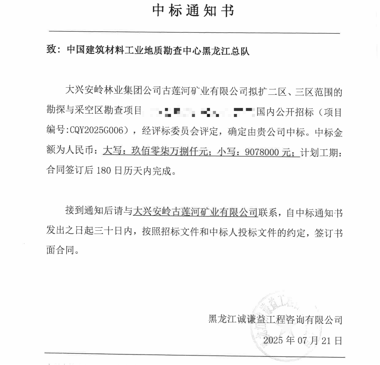 火熱盛夏、奮斗正酣。黑龍江總隊市場開拓步履鏗鏘,捷報喜傳。7月16日,總隊地質環境院中標大興安嶺林業集團公司古蓮河礦業有限公司古蓮河露天煤礦擬擴二區、三區范圍的勘探+采空區勘查項目。合同金額近千萬,刷新總隊2025年地質勘探單個項目金額記錄。這是總隊成立50余年來,首次踏入露天煤礦勘探“無人區”,一次性包攬采空區“地雷排查”硬任務,實現從“0”到“1”的歷史性跨越。
