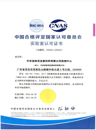 6月30日,中非高嶺茂名新材料有限公司檢測中心(以下簡稱“檢測中心”)順利通過中國合格評定國家認可委員會(CNAS)認可評定,獲得CNAS實驗室認可證書,成功躋身國際互認實驗室行列!這不僅表明檢測中心具備了按認可能力范圍開展檢測服務的技術能力,也體現了公司領導對質量體系建設的高度重視,更是公司貫徹“質量強國”“科技自立自強”戰略的具體實踐。